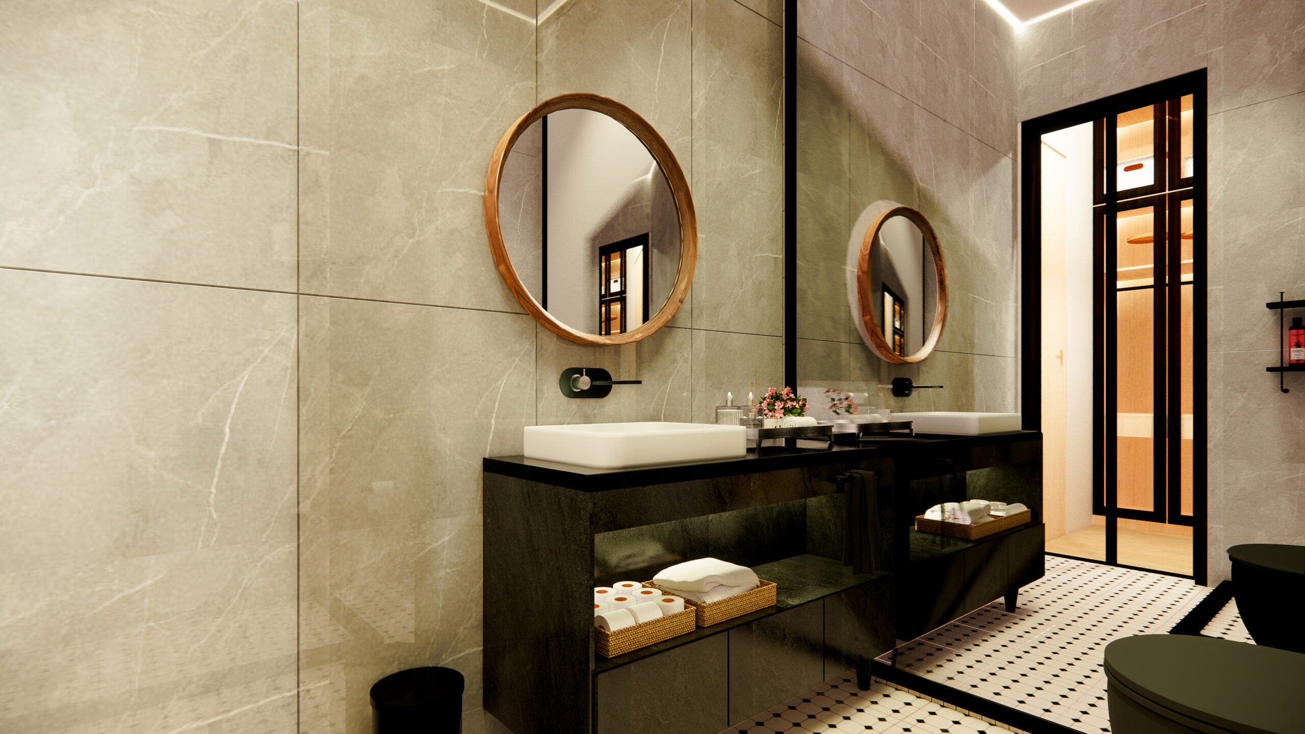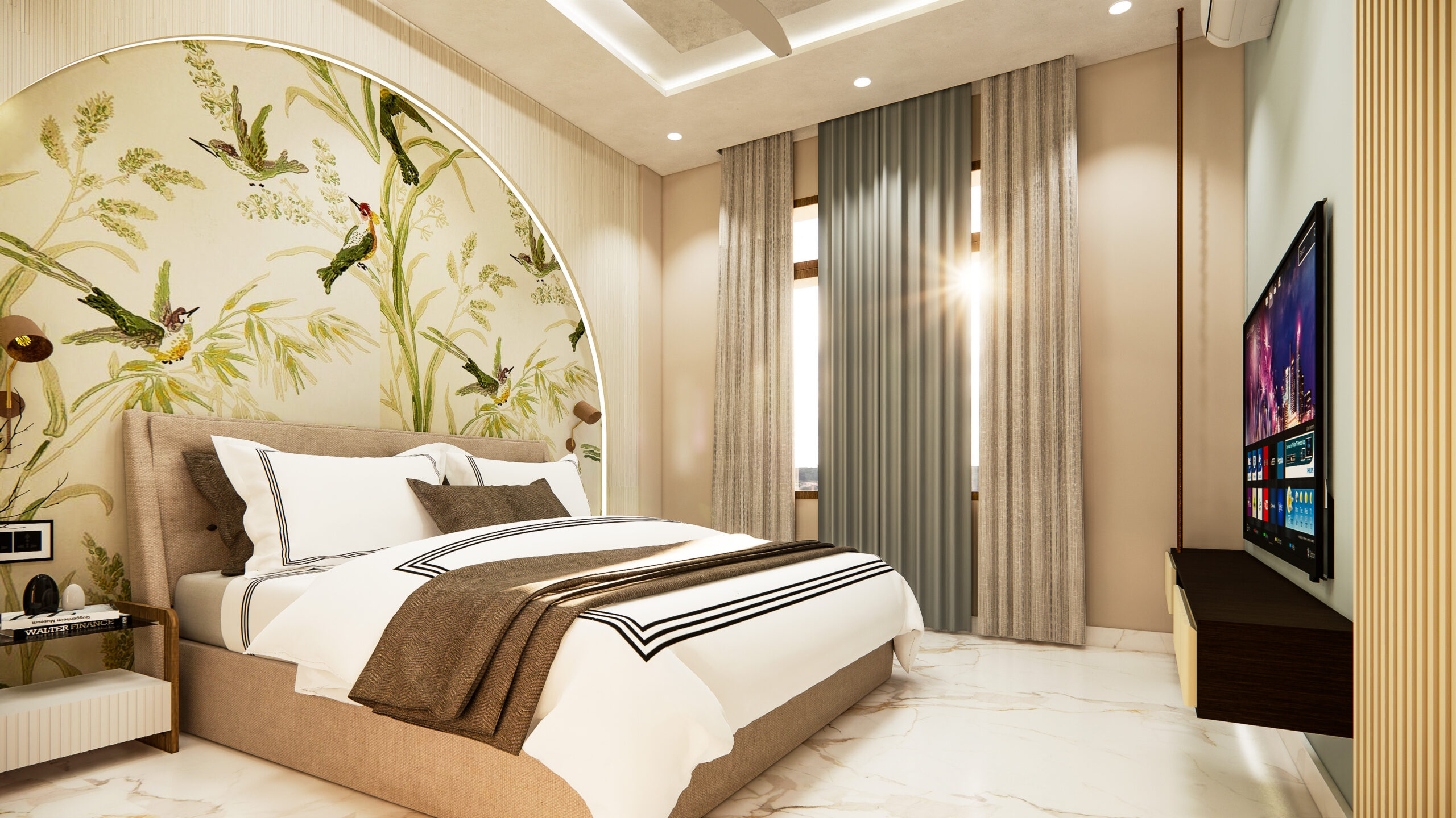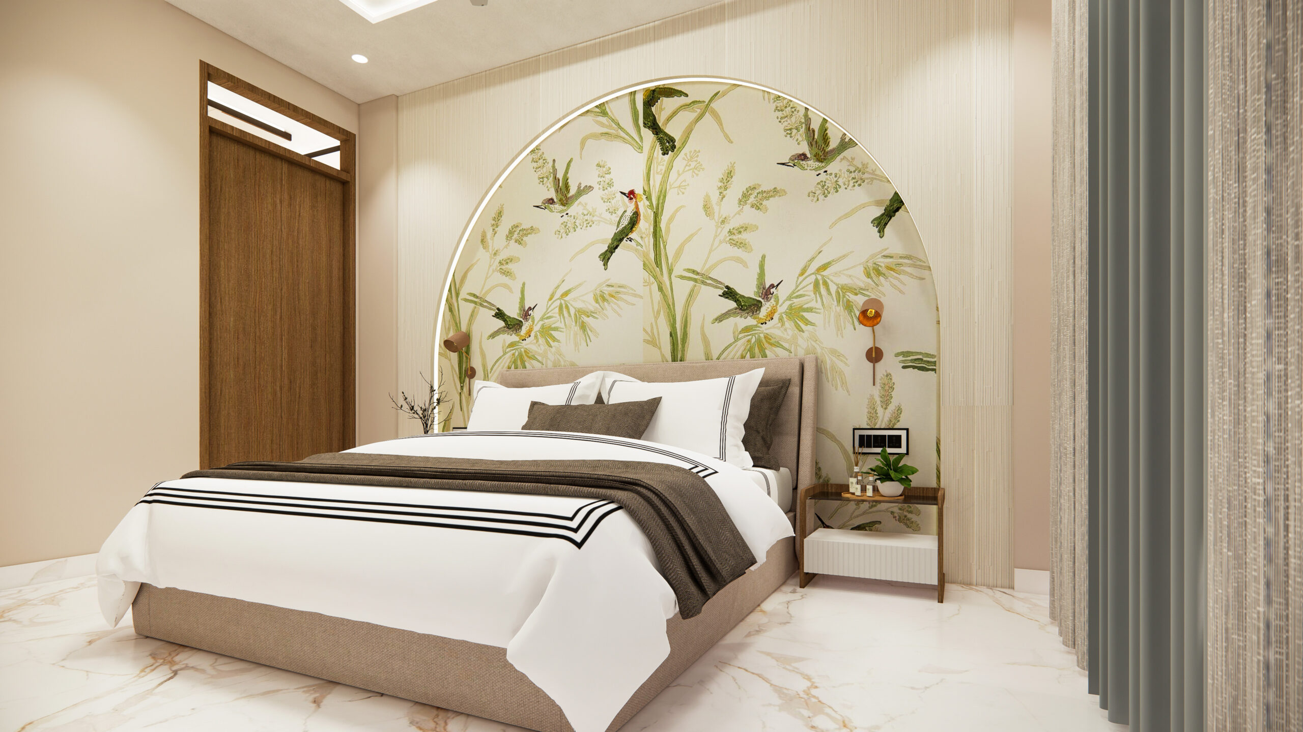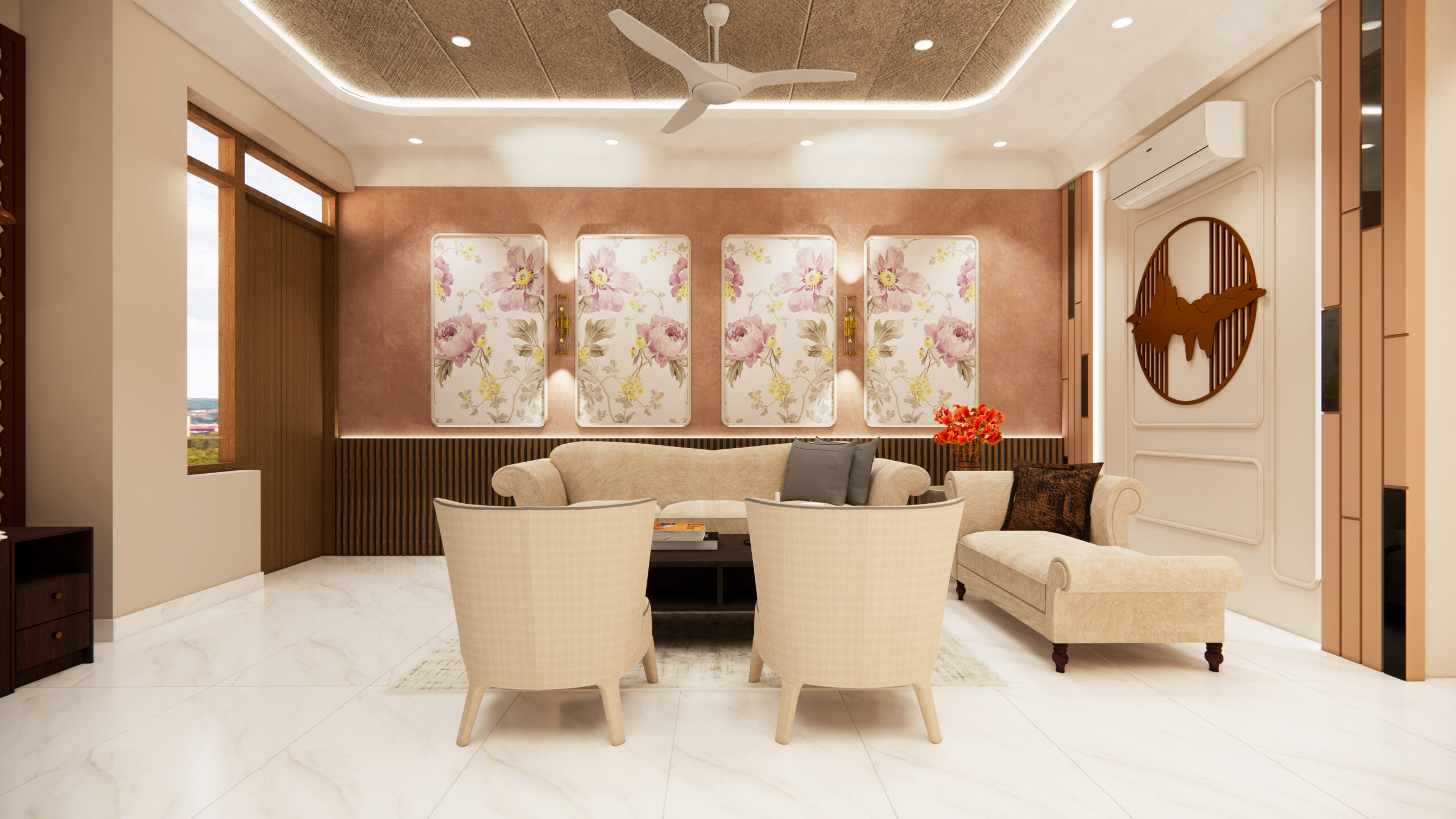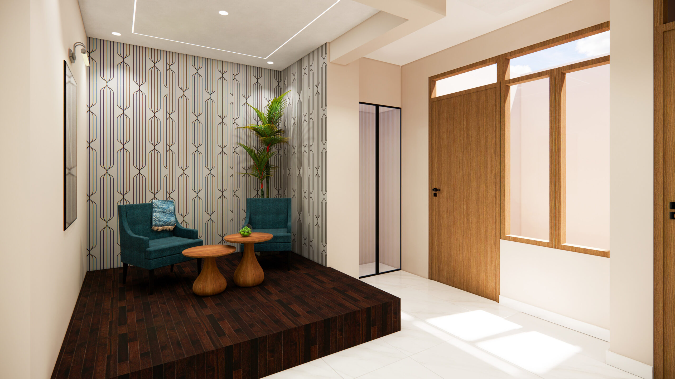 A vibrant travel agent’s office designed to energise and inspire – featuring a lively accent wall, playful textures, and fresh colours that evoke movement, exploration, and a sense of adventure.