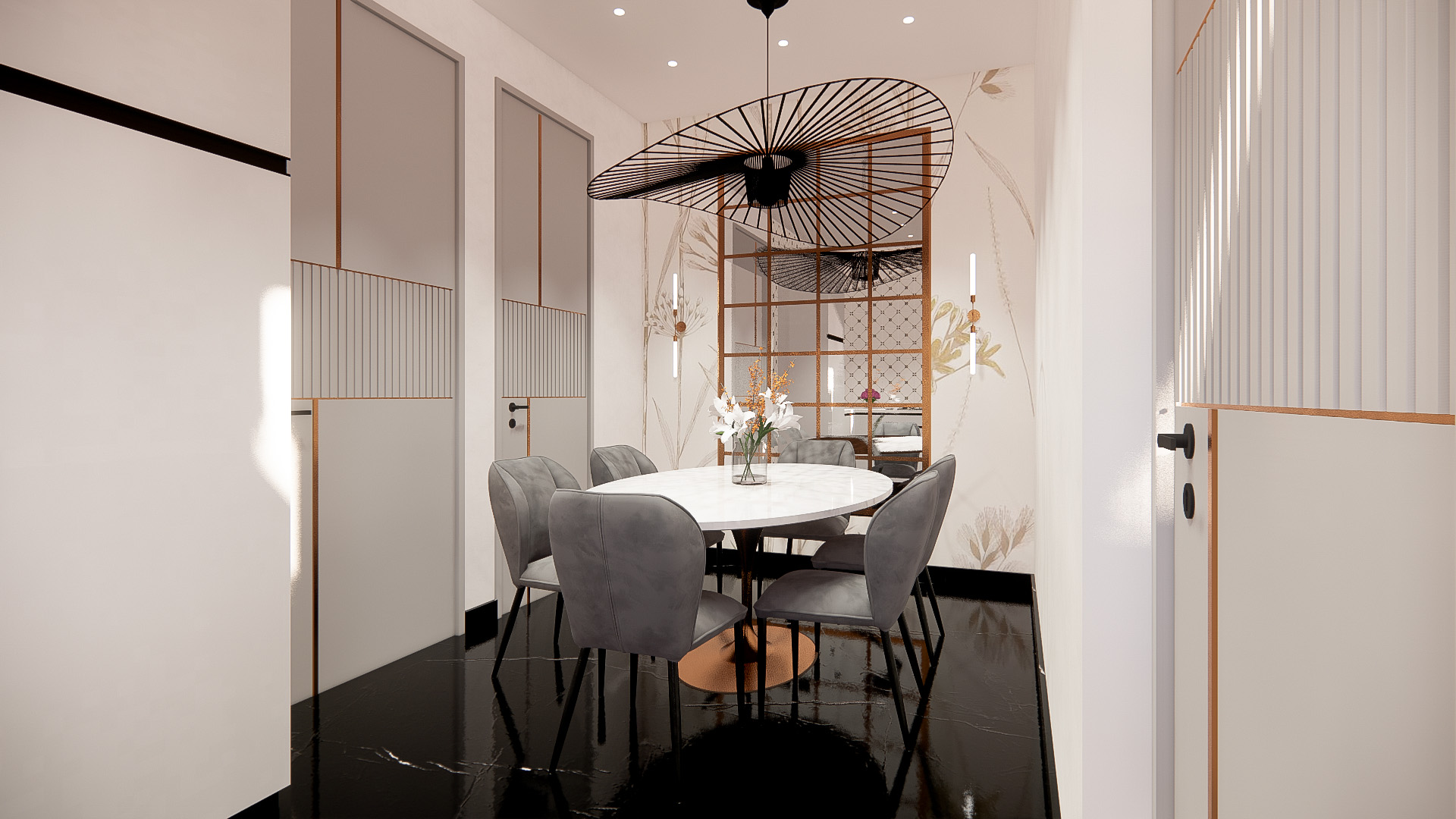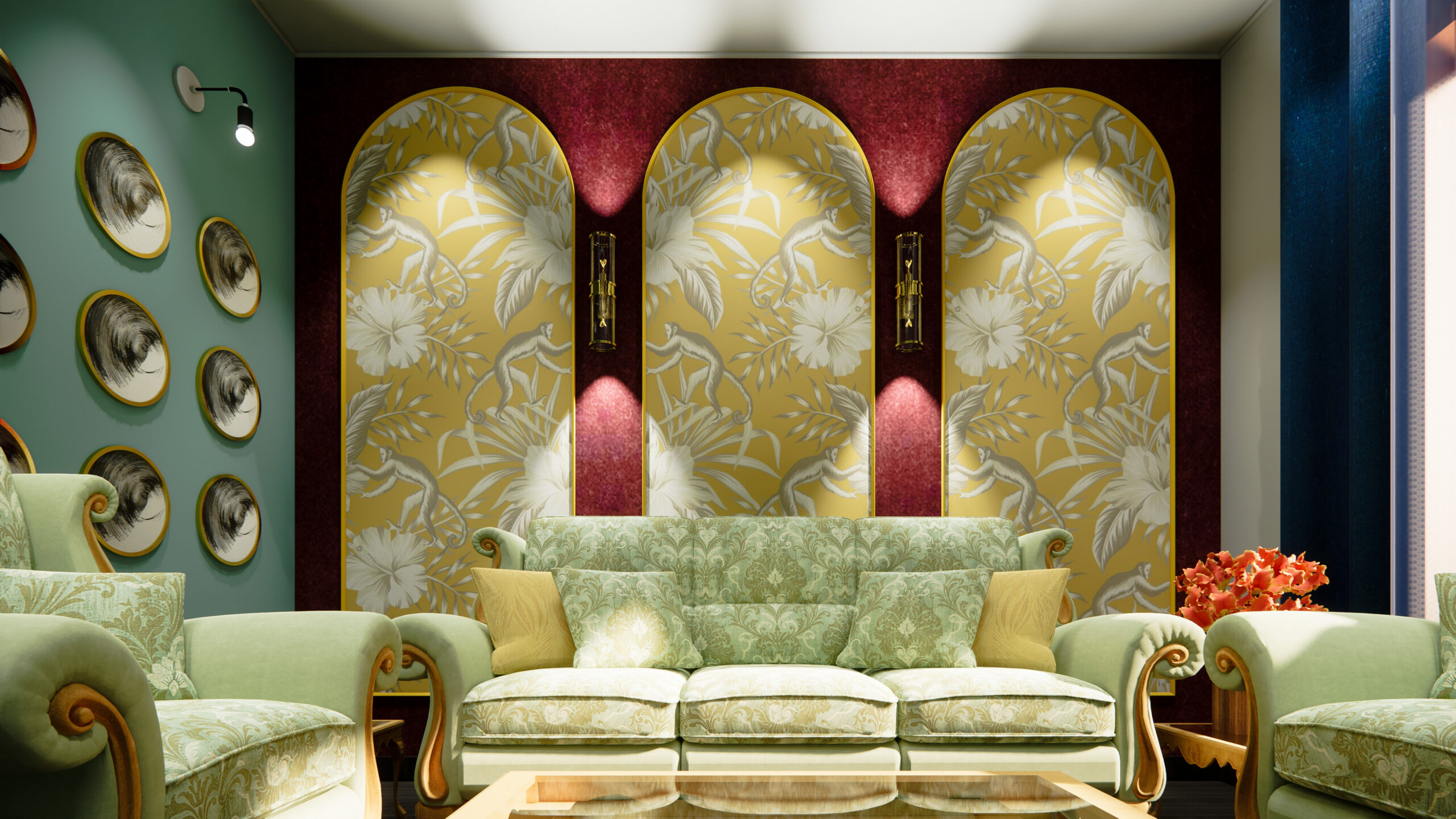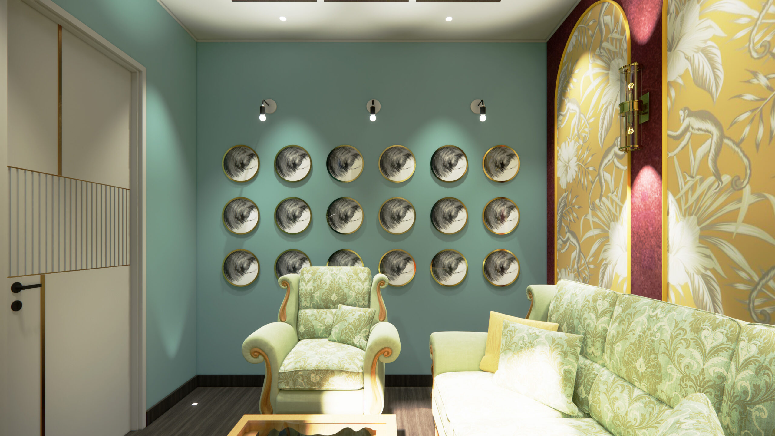 This compact escape embraces a noble palette of jewel tones and muted metallics, balanced with elegant forms and tactile finishes. The interiors feel indulgent yet restrained, where colour, texture, and light work together to create a cocooning, almost timeless atmosphere.