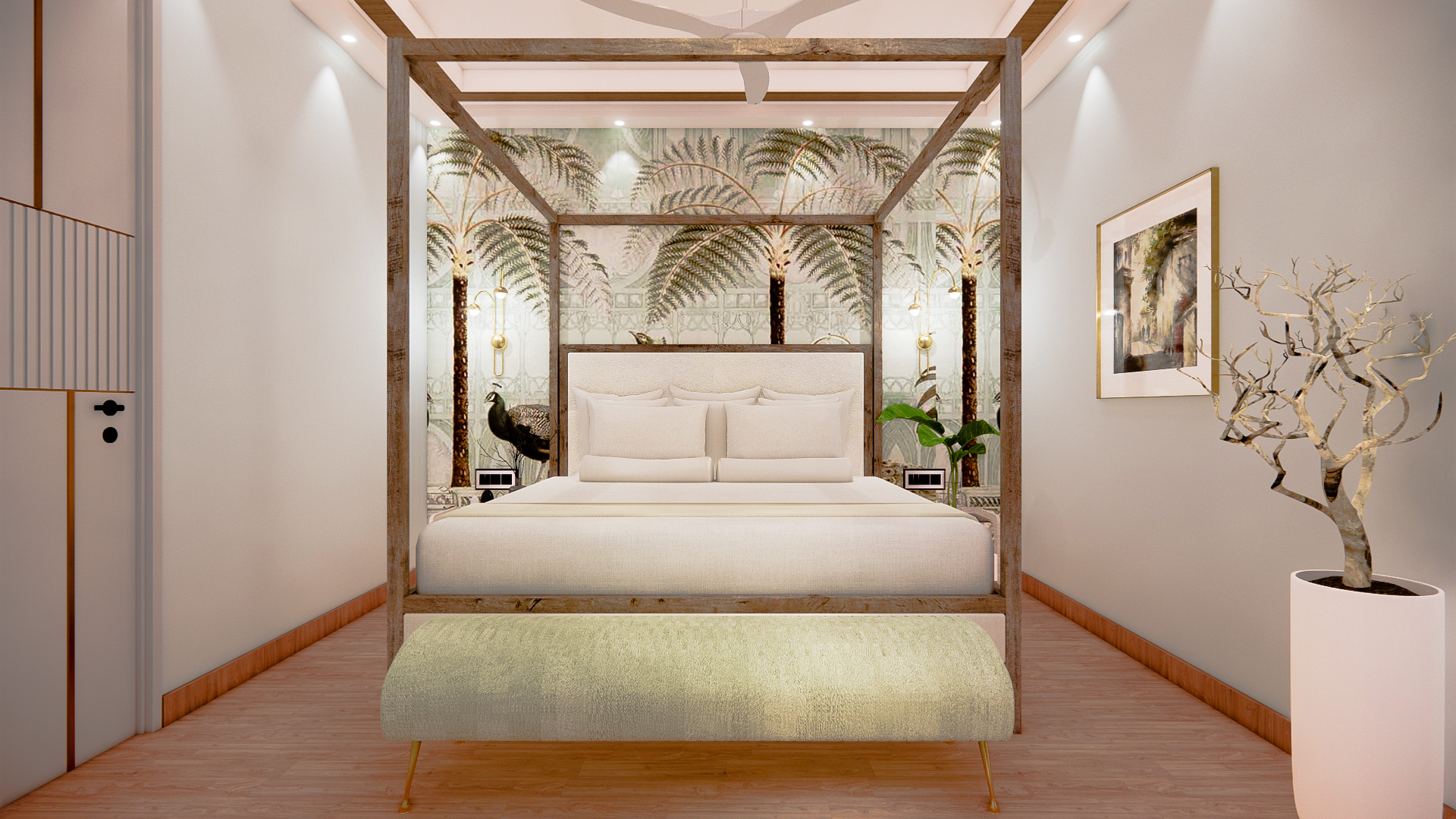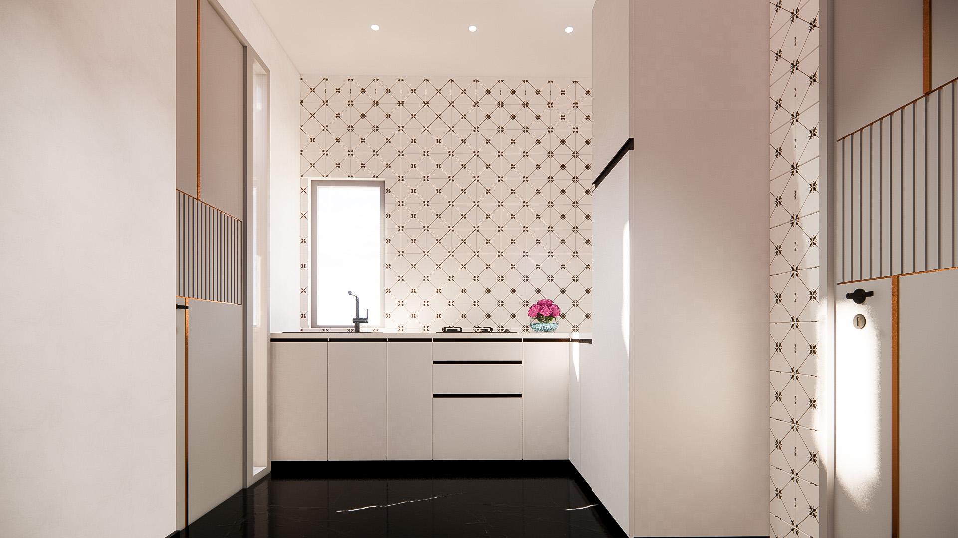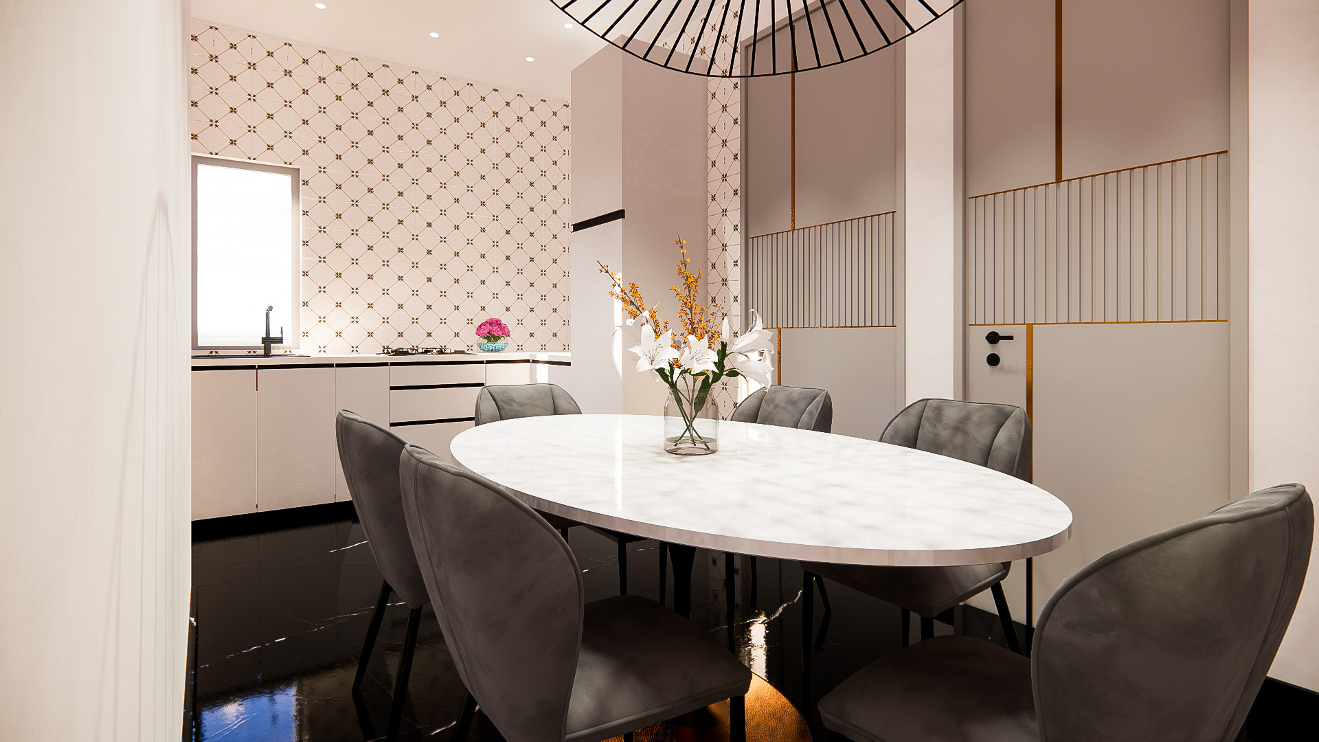 This compact escape embraces a noble palette of jewel tones and muted metallics, balanced with elegant forms and tactile finishes. The interiors feel indulgent yet restrained, where colour, texture, and light work together to create a cocooning, almost timeless atmosphere.